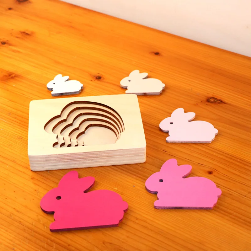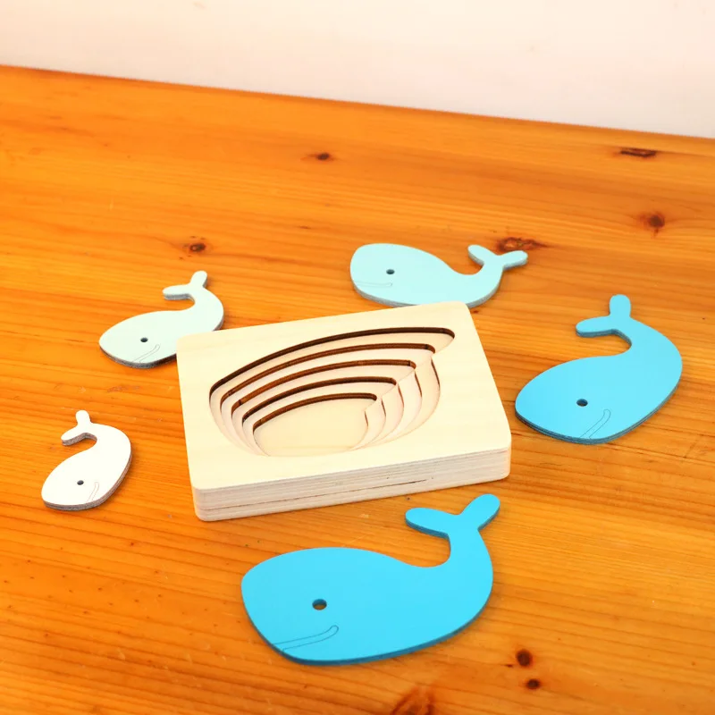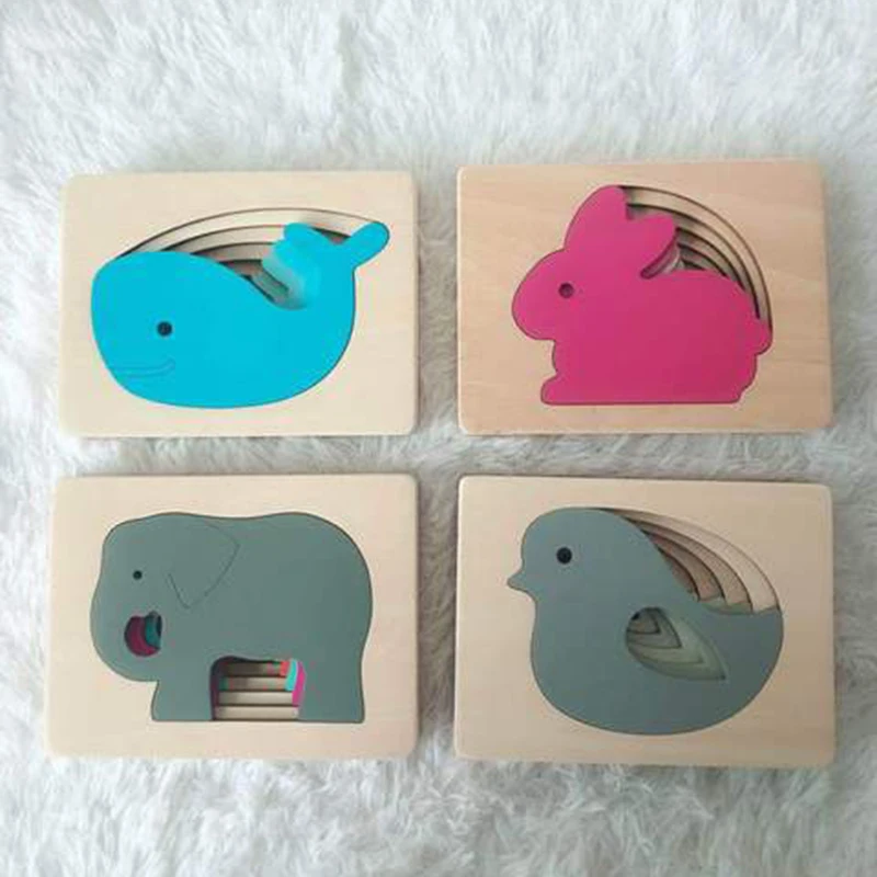 Best Montessori Baby Wooden Toy Animal Carton 3D Puzzle Multilayer Jigsaw Puzzles Hand Brain Training Ea